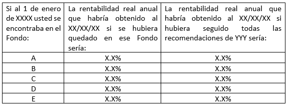 Respecto a las recomendaciones de cambio de tipo de Fondo, se deberán considerar los siguientes puntos sobre al acceso a información por parte del usuario y de las rentabilidades utilizadas en la publicidad: