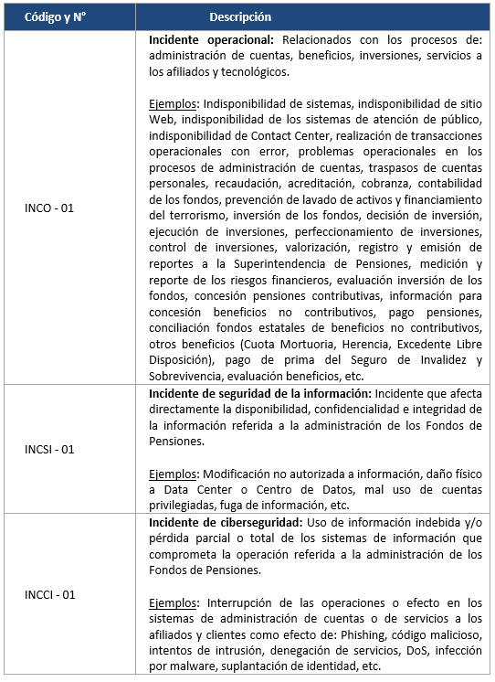 La Administradora deberá disponer de mecanismos de comunicación para reportar incidentes a los afiliados, los usuarios, partes interesadas, a la industria y a la Superintendencia de Pensiones, cuando estos incidentes afecten la disponibilidad o calidad del servicio o exista el riesgo de afectar a afiliados, empleadores, AFP u otras entidades del sistema previsional.