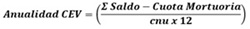 CEV = [Anualidad CEV x (Factor de corrección)] x % Según edad de la tabla