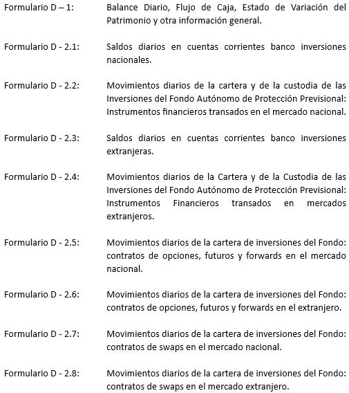 Libro IV, Título XII, Letra C. Informe Diario que debe presentar la Administradora del Fondo Autónomo de Protección Previsional