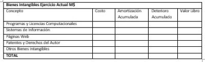 Se deberá presentar el detalle de los bienes intangibles del Administrador del Fondo Autónomo de Protección Previsional, de acuerdo con el siguiente cuadro. La información deberá presentarse en miles de pesos y corresponde al período comprendido entre el 1 de enero y la fecha de corte de los estados financieros.