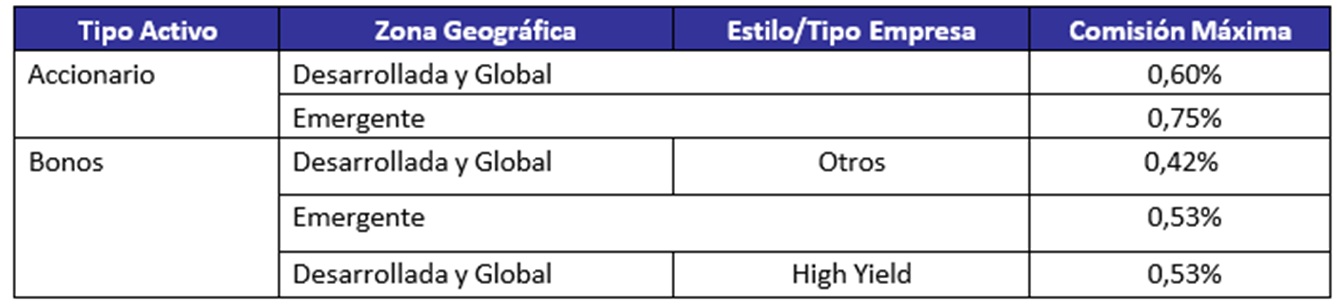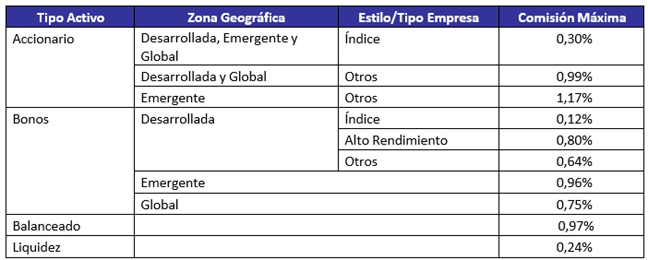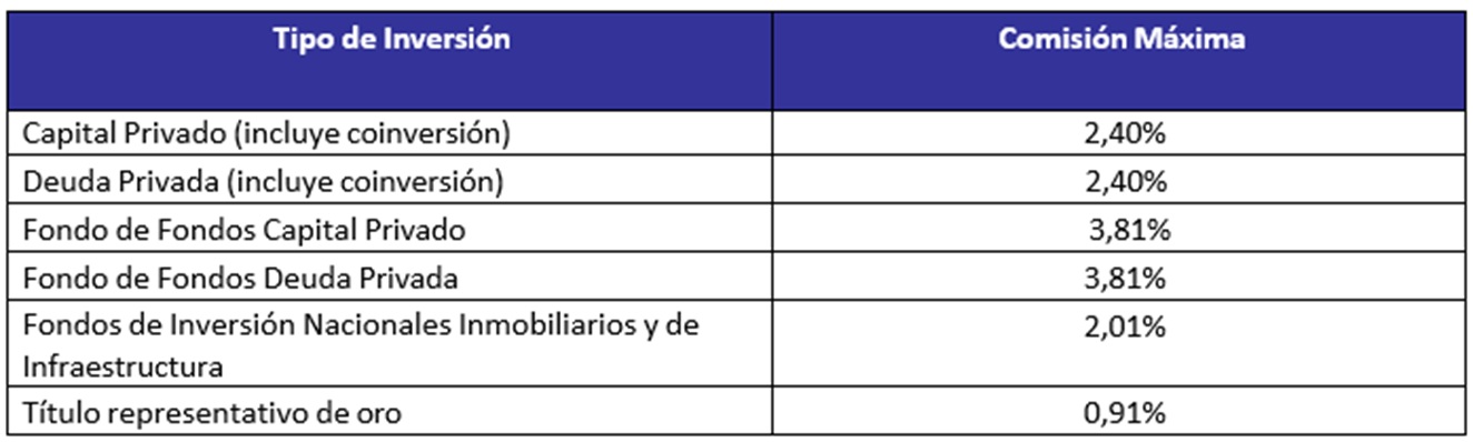 Las comisiones máximas expresadas en porcentaje y en términos anualizados, que pueden ser pagadas a cada tipo de fondo, con recursos de los Fondos de Pensiones, considerando los aspectos definidos en la presente norma, son las siguientes: