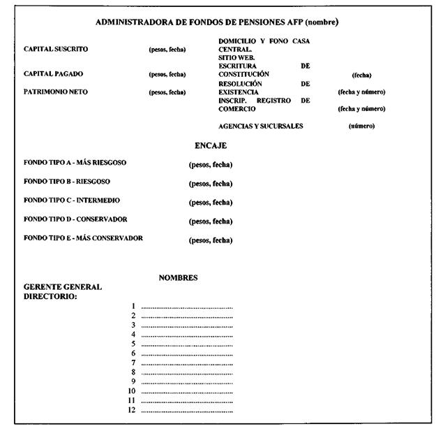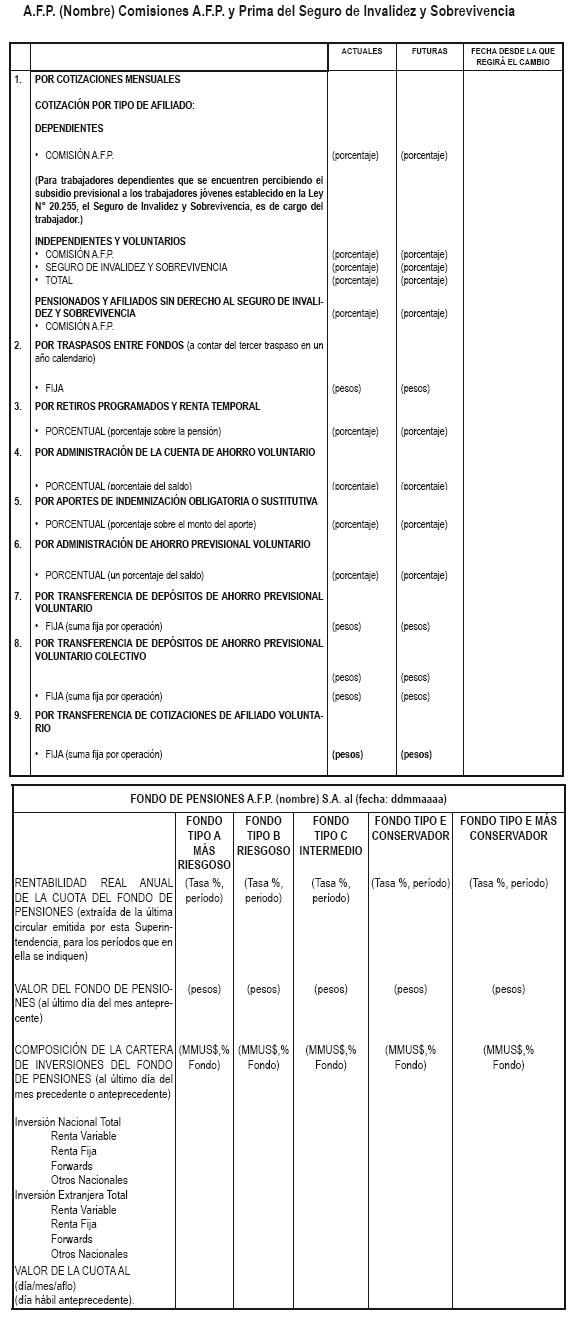 Libro V Aspectos Administrativos y Operacionales de las Administradoras de Fondos de Pensiones y del Instituto de Previsión Social > Título III Agencias y Centros de Servicios, Servicios por internet y publicidad de las Administradoras de Fondos de Pensiones > Anexos > Anexo Nº 3 Panel informativo