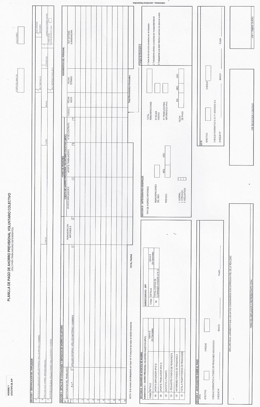 Los formularios "PLANILLA DE PAGO DE AHORRO PREVISIONAL VOLUNTARIO COLECTIVO deberán ser confeccionados a lo menos en triplicado (un original y dos copias).
