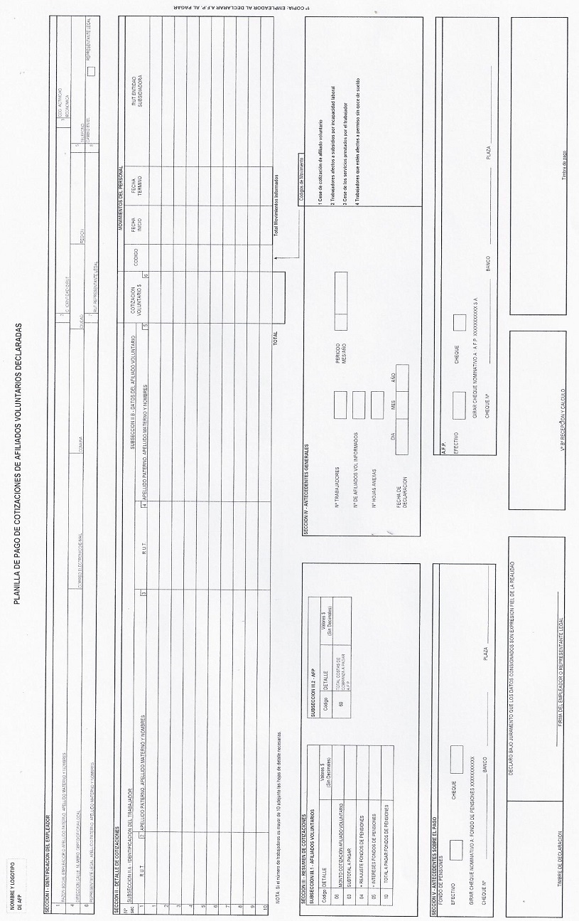 Nota de actualización: El formulario Panilla de Pago de Cotizaciones de Afiliados Voluntarios Declaradas fue reemplazado por la Norma de Carácter General N° 202, de fecha 11 de septiembre de 2017.