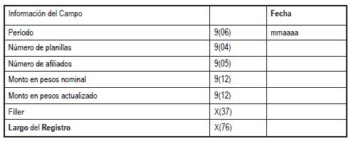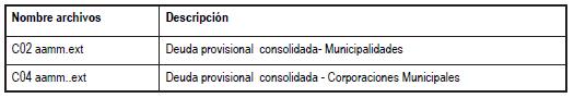Las estructuras de registros definidas deben utilizarse para informar los siguientes archivos: