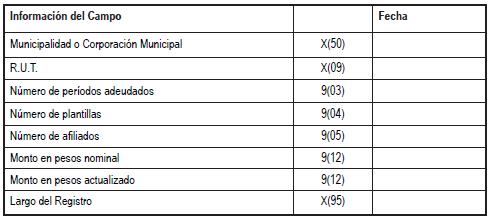 Libro II Cotizaciones Previsionales > Título X Información de empleadores que deben proporcionar las AFP > B. Deudas de Municipalidades y Corporaciones Municipales > Anexos > Anexo Instrucciones para el envío del informe trimestral de cotizaciones impagas de las Municipalidades y Corporaciones Municipales