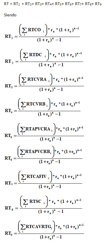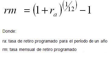 Asimismo, seis meses antes del inicio de la Renta Vitalicia Diferida, deberá recalcularse el monto de la pensión de modo que se agote el saldo con el último pago. En este caso la Administradora deberá utilizar las fórmulas antes señaladas según sea el caso, utilizando un "n" igual a 6 y la tasa de interés mensual equivalente a la tasa de interés anual vigente para el período de un año, que para estos efectos fije la Superintendencia. La tasa de interés mensual, se calcula de acuerdo a lo siguiente: