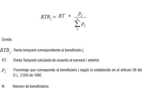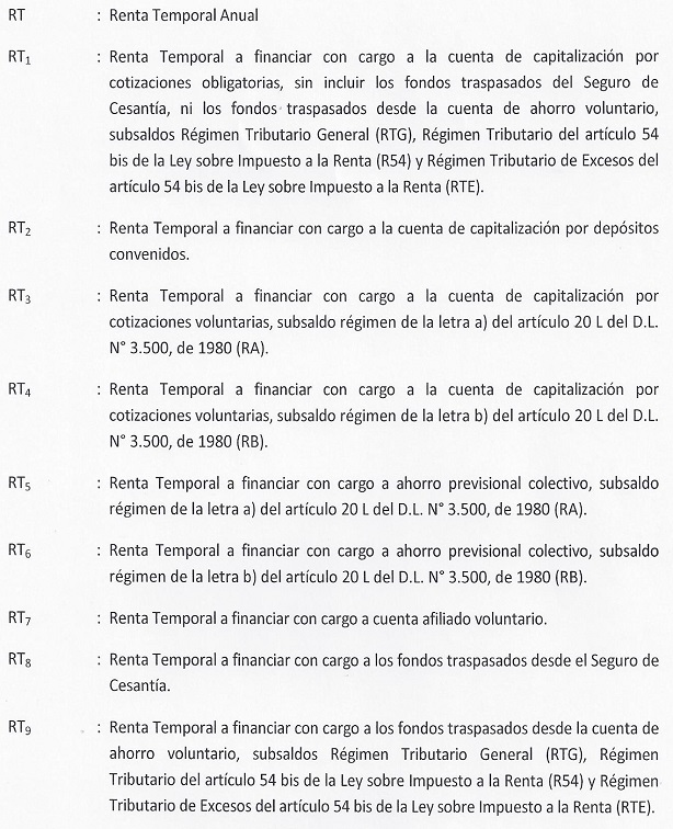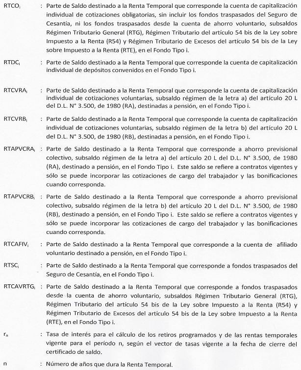 Definiremos como saldo destinado a la Renta Temporal al saldo de la cuenta personal, después de haber rebajado las cuotas necesarias para cubrir el monto en U.F. de las pensiones devengadas con anterioridad a la Renta Temporal o los pagos efectuados, según corresponda, y la Prima Única.