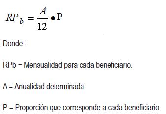 La anualidad así determinada se pagará en doce mensualidades, correspondiendo a cada beneficiario la cantidad que resulte de aplicar la siguiente fórmula: