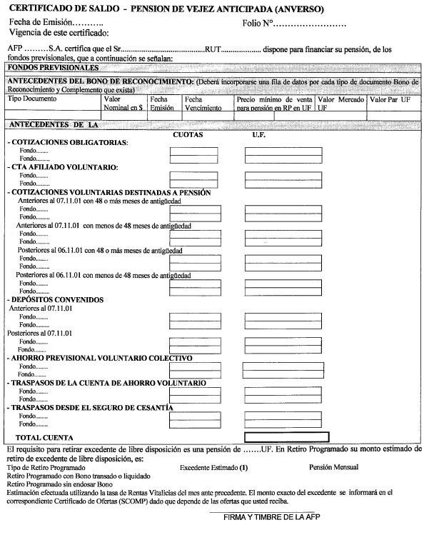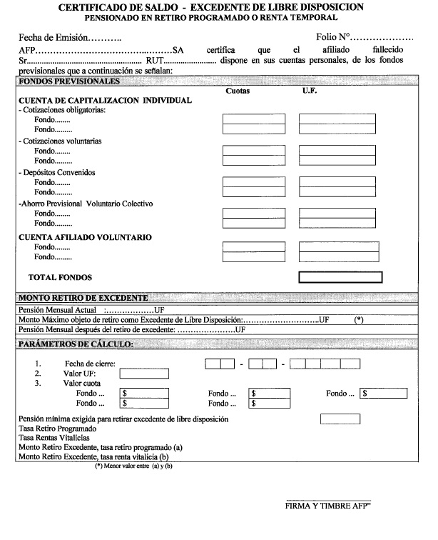 El contenido del certificado de saldo deberá ajustarse a la situación particular del afiliado, de modo de facilitar la comprensión de este documento por parte del mismo. Lo anterior implica que los ítems que no tengan valor no deberán incluirse en el documento, ya que si se indican con monto cero confunden al afiliado.