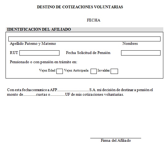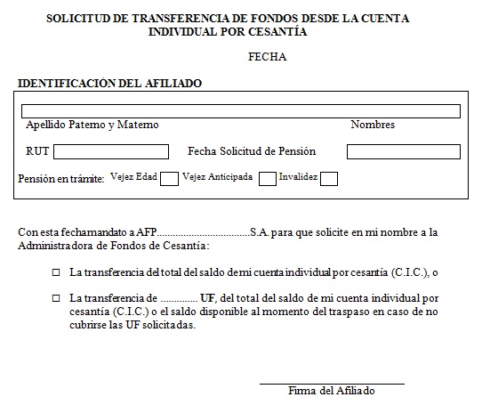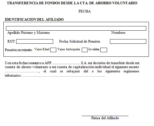Nota de actualización: Este formulario de Transferencia de Fondos desde la Cta. de Ahorro Voluntario fue reemplazado por la Norma de Carácter General Nº 48, de fecha 29 de mayo de 2012.