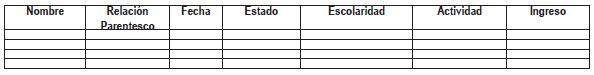 2. Antecedentes del afiliado(a) fallecido(a), a la fecha del deceso: El objetivo de este rubro es determinar la situación socio-económica que tenía el o la afiliado(a) a la fecha del fallecimiento: grupo familiar, ingresos, vivienda, escolaridad, etc.