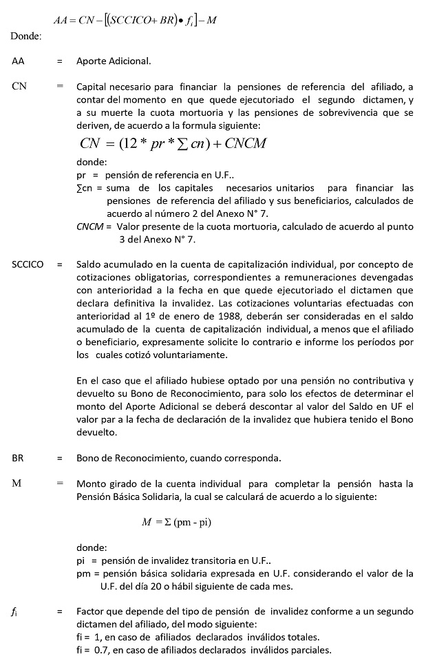 Si a la fecha del cálculo del aporte adicional, existiese en trámite una solicitud de calificación de invalidez para un beneficiario, se deberá considerar como si éste no fuere inválido y una vez dictaminada la invalidez se deberá enterar el aporte adicional faltante, si correspondiere. Por otra parte, si al momento de realizarse el cálculo del aporte adicional existiese algún beneficiario respecto de quien no se contara con toda la documentación que acredite su derecho a pensión, se enterará el aporte adicional sin considerarlo. En todo caso, el beneficiario mantendrá su derecho sobre el aporte adicional y se enterará el monto faltante, una vez que la Administradora termine el proceso de validación correspondiente.