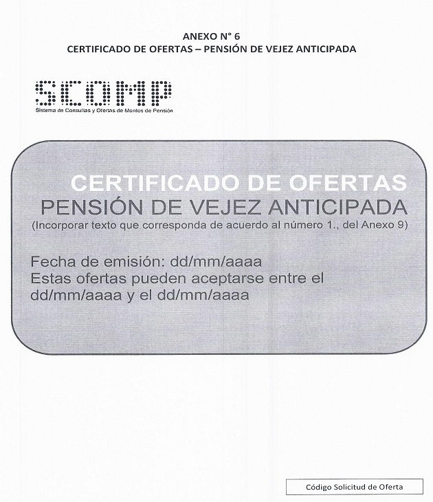 Anexo N° 6 Certificado de Ofertas - Pensión de Vejez Anticipada
