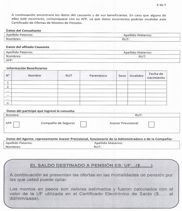 Anexo N° 8 Certificado de Ofertas - Pensión de Sobrevivencia