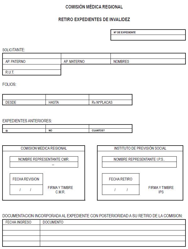 Libro III Beneficios Previsionales > Título V Sistema Solidario de Pensiones > M. Archivo de Expedientes de Calificación de Invalidez para Pensión Básica Solidaria > Anexos > Anexo Retiro Expedientes de Invalidez