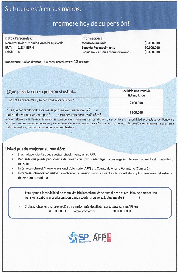 Libro III Beneficios Previsionales > Título IX Proyección de Pensión Personalizada del Afiliado > Anexos > Anexo Nº 3 Información para Afiliados que le faltan 10 años o más para cumplir la edad legal para pensionarse - Ejemplo de anexo de cartola de proyección de pensión