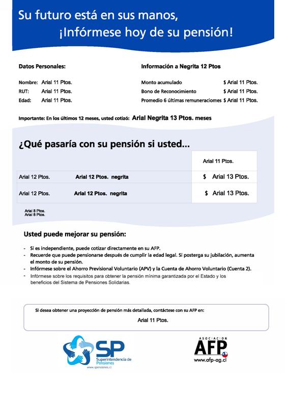 Libro III Beneficios Previsionales > Título IX Proyección de Pensión Personalizada del Afiliado > Anexos > Anexo Nº 6 Información para Afiliados que le faltan menos de 10 años para cumplir la edad legal para pensionarse - Tipo y tamaño de letra