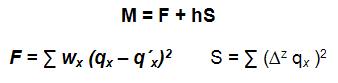 Donde F (fit) es la medida de ajuste mientras que S (smooth) es una medida de suavidad de la curva. Mientras que el parámetro h le da más o menos intensidad a la suavidad de la curva.