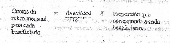 La anualidad definida precedentemente será pagada en doce cuotas de retiro mensual para cada beneficiario, las que serán calculadas de la siguiente manera: