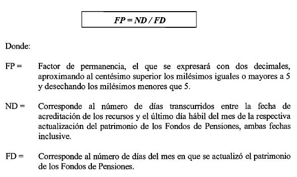 10. A la comisión determinada sobre el saldo inicial, se le agregará el porcentaje de la comisión vigente aplicado sobre el valor nominal en pesos de todos los recursos que se hubieren abonado a la cuenta personal a la fecha de la actualización del patrimonio de los Fondos de Pensiones, ponderada por un factor de permanencia en el Fondo.