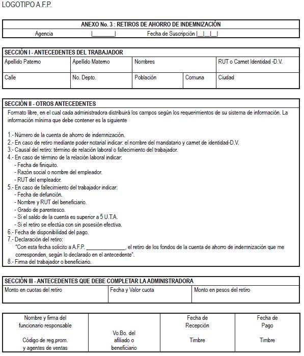 Anexo Nº 3 Retiros de Ahorro de Indemnización