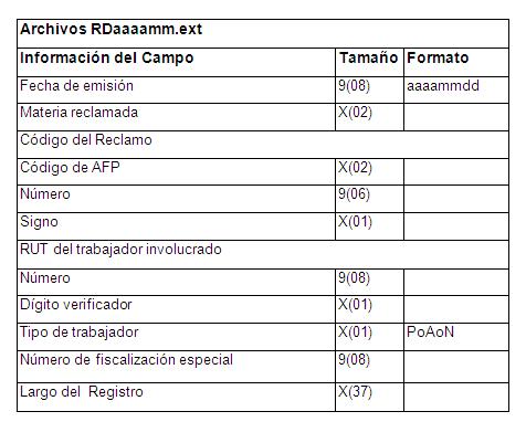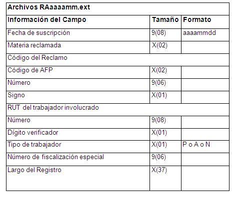 | 1 | RAaaaamm.ext | Número de reclamos suscritos en la AFP que presentan atraso en la emisión de los dictámenes |