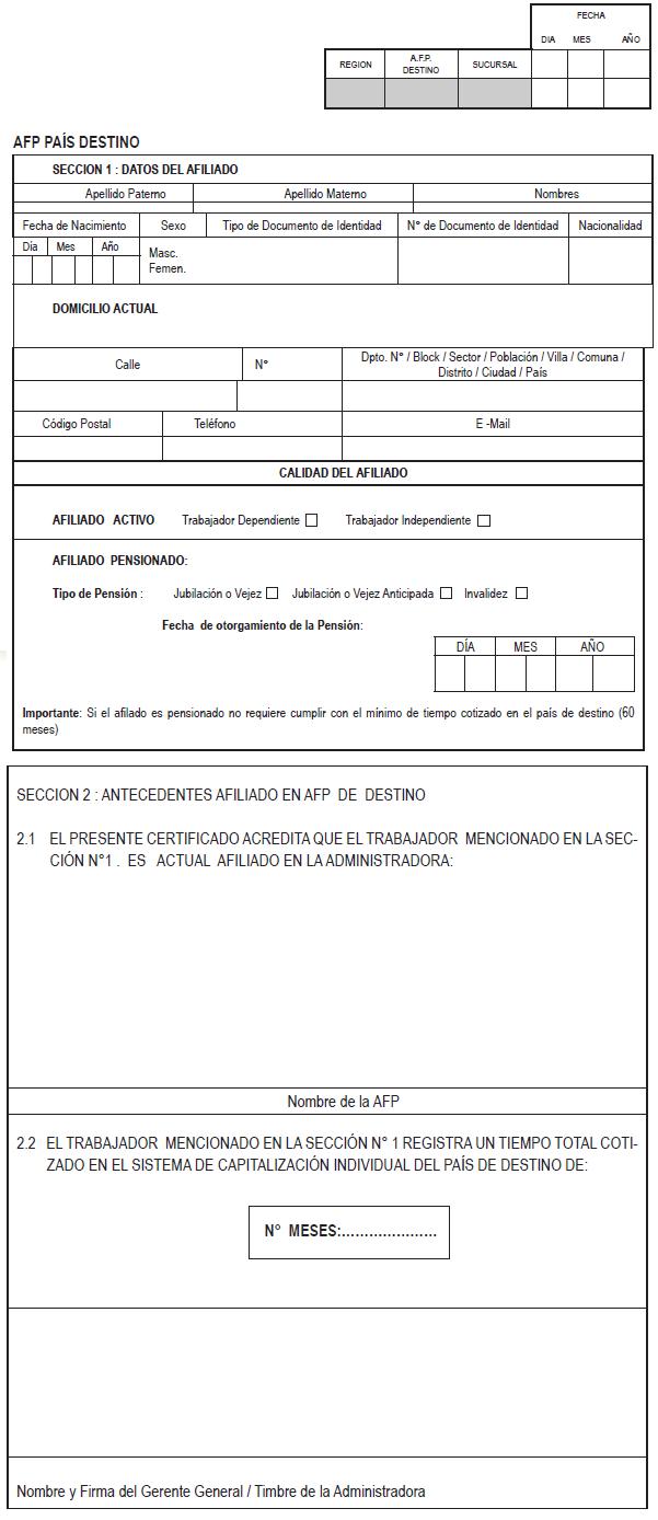 Libro III Beneficios Previsionales > Título IV Otorgamiento de Beneficios Previsionales en virtud de los convenios internacionales sobre seguridad social > Anexos > Anexo N° 5 Convenio de Seguridad Social entre Chile y Perú: Certificado de afiliación al Sistema de Capitalización Individual