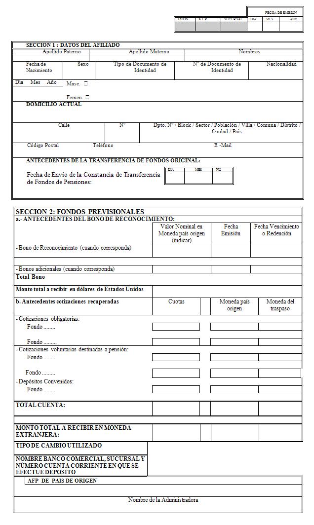 Libro III Beneficios Previsionales > Título IV Otorgamiento de Beneficios Previsionales en virtud de los convenios internacionales sobre seguridad social > Anexos > Anexo N° 7 Convenio de Seguridad Social entre Chile y Perú: Certificado de transferencia de fondos recuperados