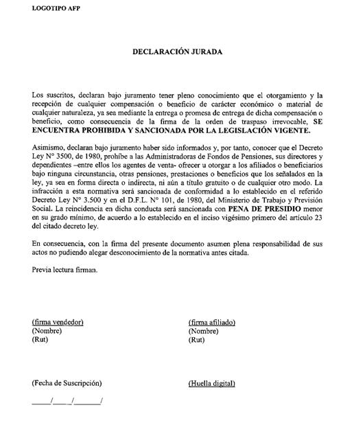 Libro I Afiliación al Sistema de Pensiones del D.L. N° 3.500 de 1980 > Título III Administración de Cuentas Personales > A. Administración de Cuentas Personales > Anexos > Anexo Nº 1A Declaración Jurada