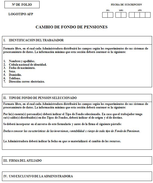 Libro I Afiliación al Sistema de Pensiones del D.L. N° 3.500 de 1980 > Título III Administración de Cuentas Personales > A. Administración de Cuentas Personales > Anexos > Anexo Nº 7 Formulario Cambio de Fondo de Pensiones