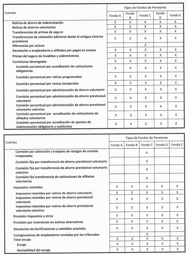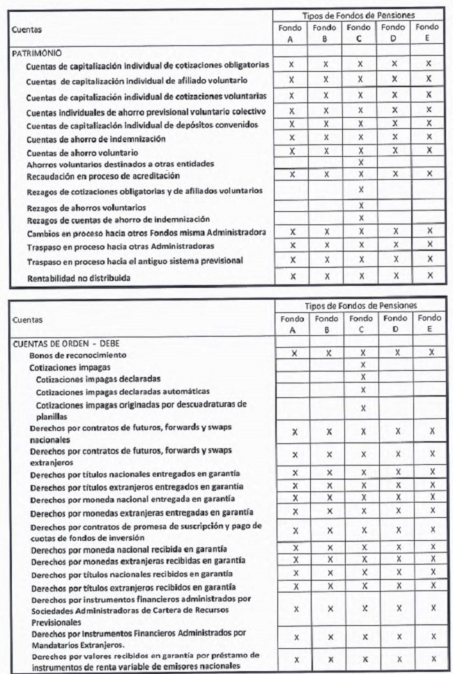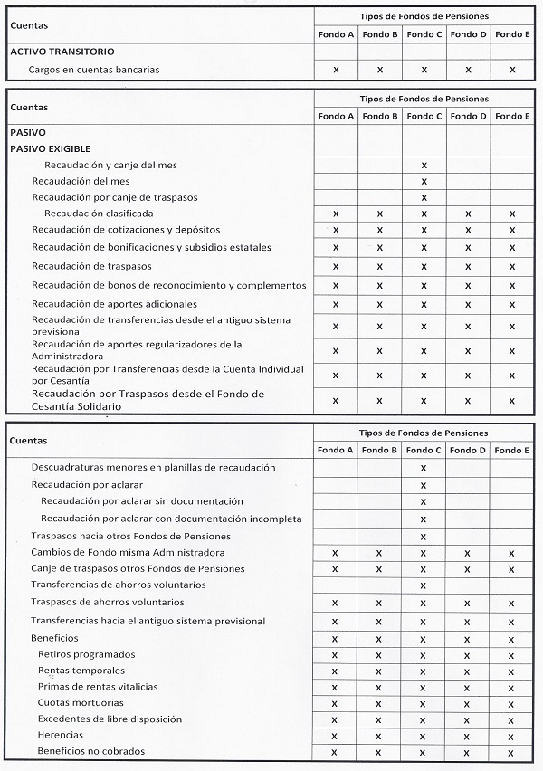 Libro IV Fondos de Pensiones y Regulación de Conflictos de Intereses > Título VII Contabilidad de los Fondos de Pensiones y de las Administradoras de Fondos de Pensiones > A. Normas Contables > Capítulo V. Plan de Cuentas de los Fondos de Pensiones