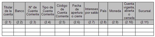 El formulario del listado de cuentas corrientes se compone de 11 columnas, en donde se deberá informar tanto las cuentas corrientes vigentes como las cuentas abiertas o cerradas durante el mes al que se refiere el informe. Dicho formulario debe ser completado de acuerdo a las instrucciones impartidas más adelante.