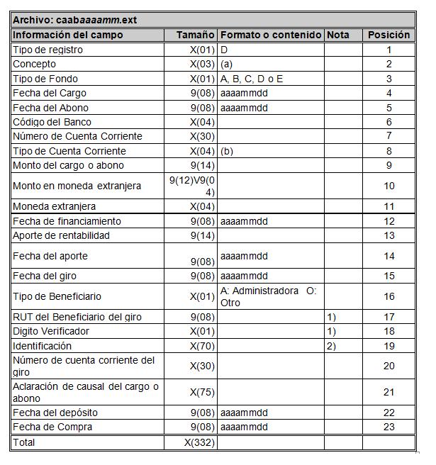 - El número correlativo definido para cada dato en la descripción de los registros de datos, bajo el título Posición, corresponde a la posición que ocupa el dato en el registro.
