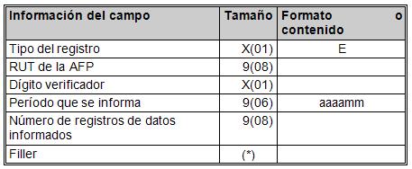 - Todos los archivos de datos deben incluir un registro de encabezado del mismo largo que los registros de datos (debe completarse con blancos a la derecha). Este registro se informa al comienzo del archivo y su descripción es: