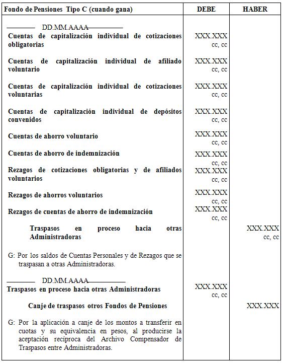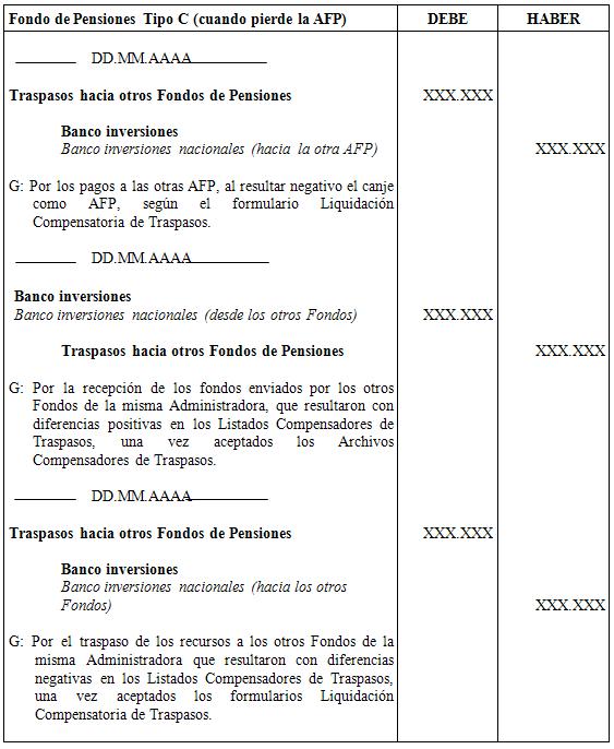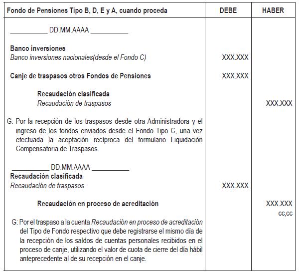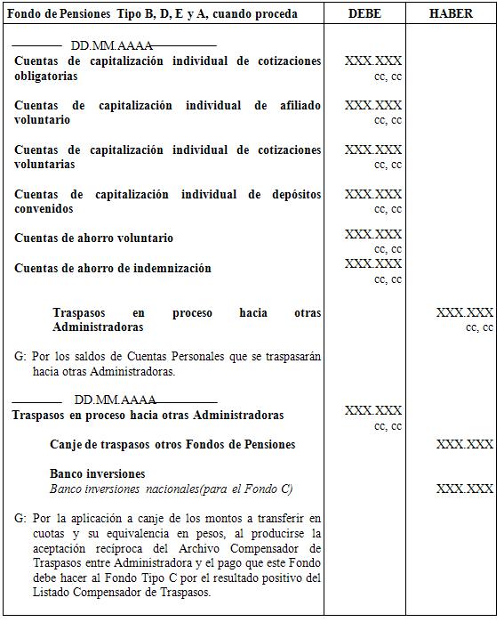 Libro IV Fondos de Pensiones y Regulación de Conflictos de Intereses > Título VII Contabilidad de los Fondos de Pensiones y de las Administradoras de Fondos de Pensiones > A. Normas Contables > Anexos > Anexo Nº 6 Secuencia Contable de los Traspasos de Saldos entre Administradoras