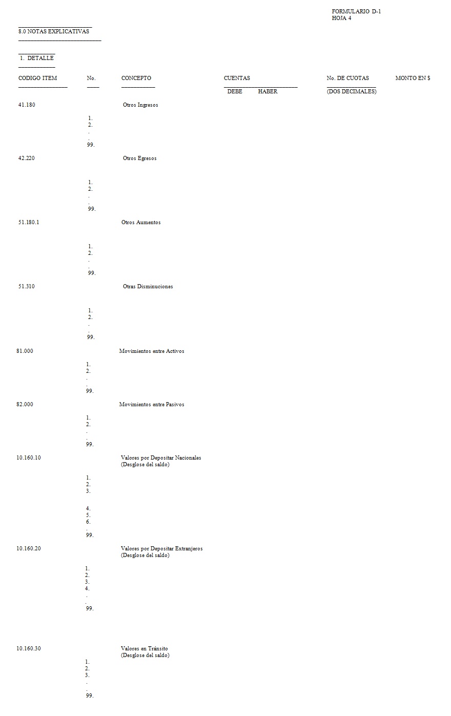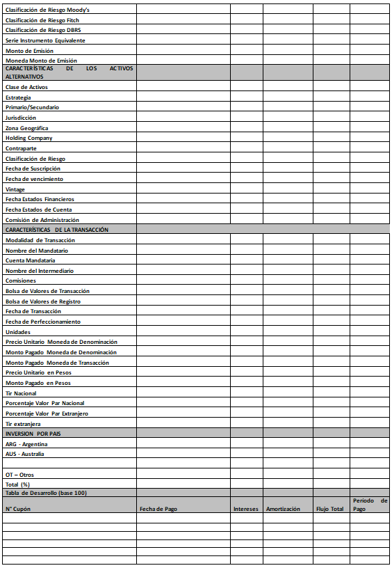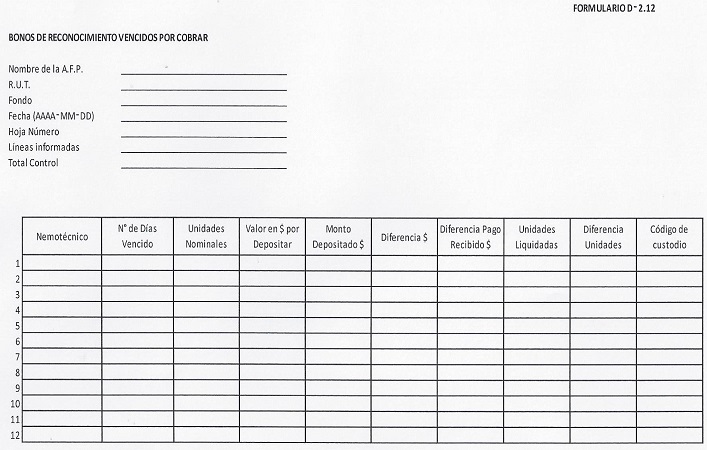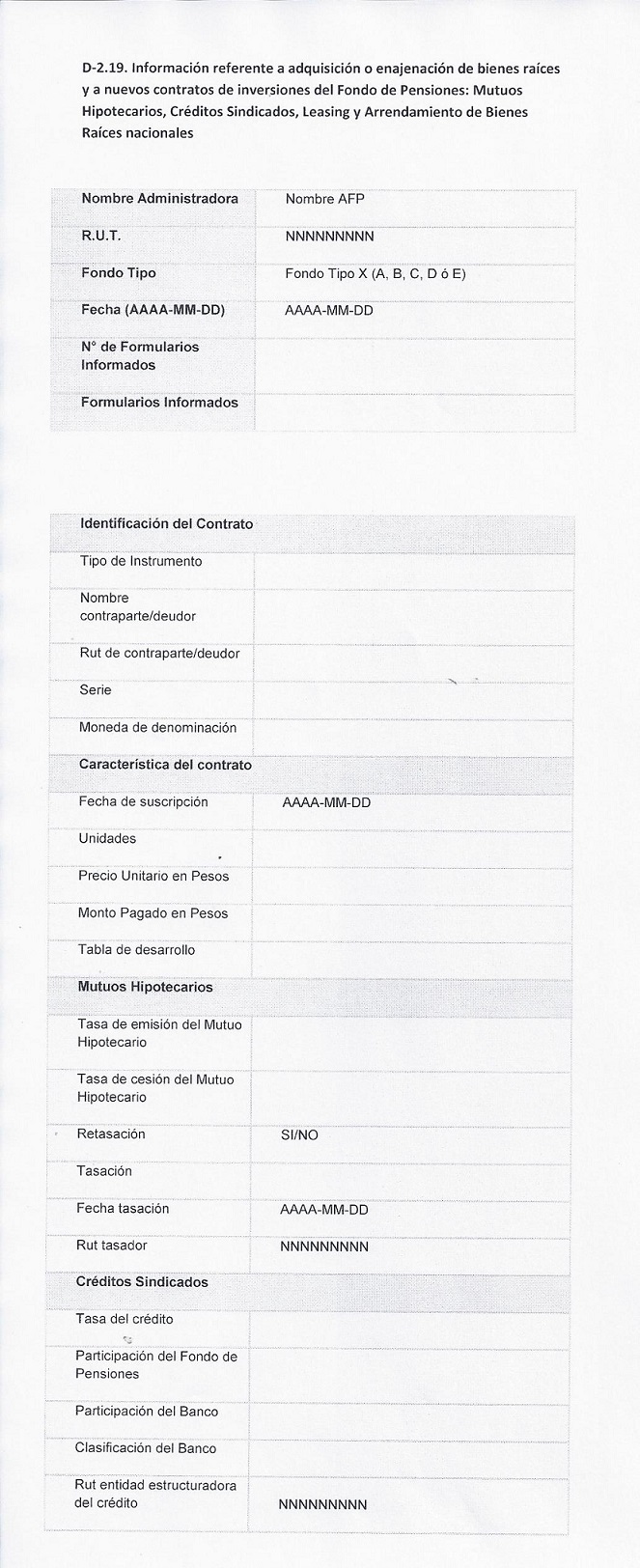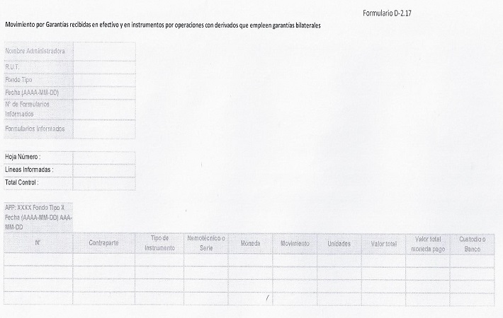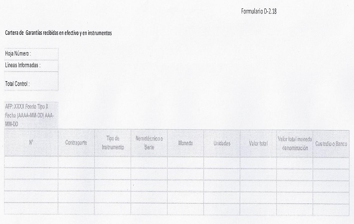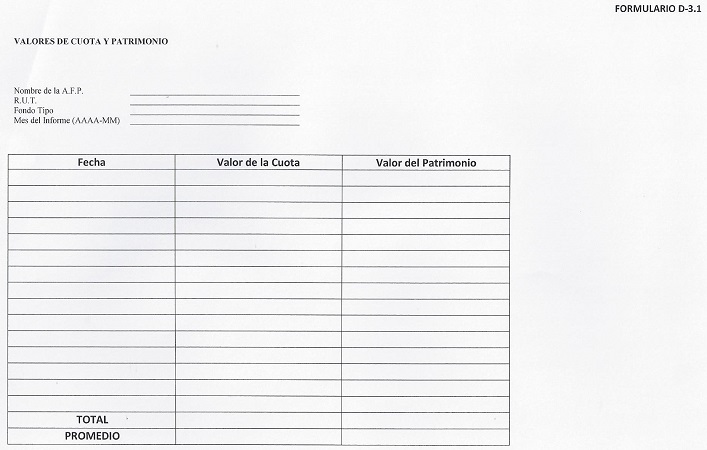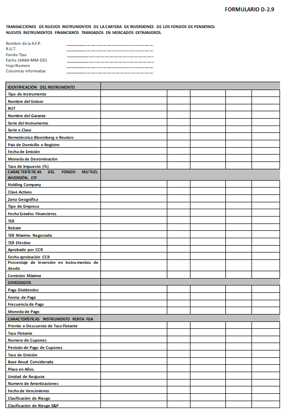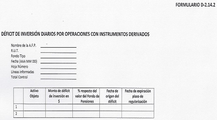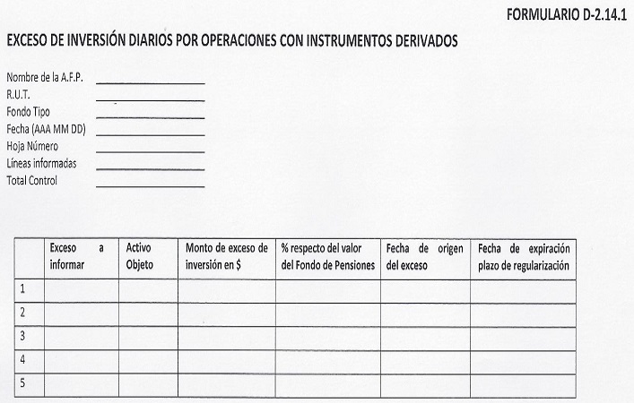 Libro IV Fondos de Pensiones y Regulación de Conflictos de Intereses > Título VIII Informes Diarios que deben presentar las Administradoras de Fondos de Pensiones > Anexos > Anexo Nº 1 Formularios del Informe Diario