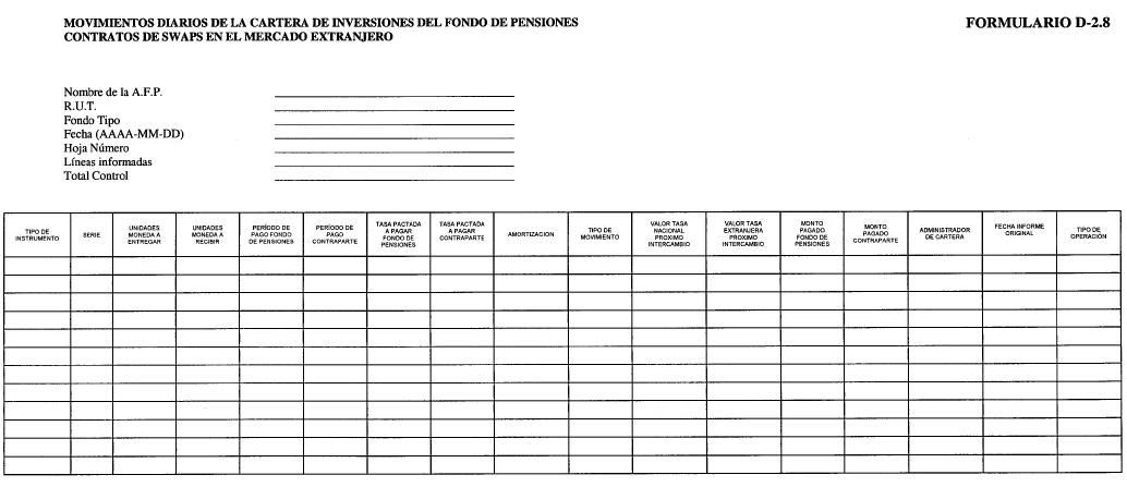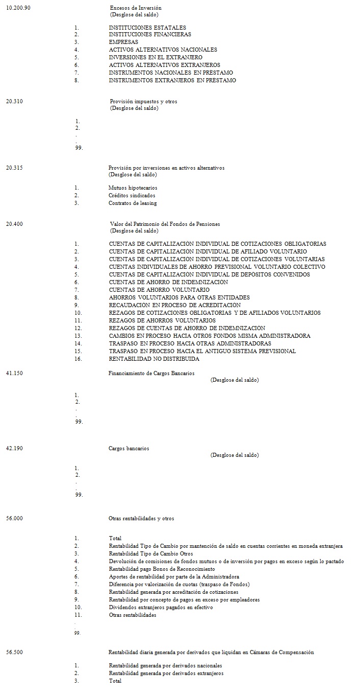 Libro IV, Título VIII Informes Diarios que deben presentar las Administradoras de Fondos de Pensiones, Anexos