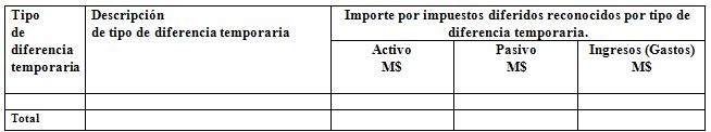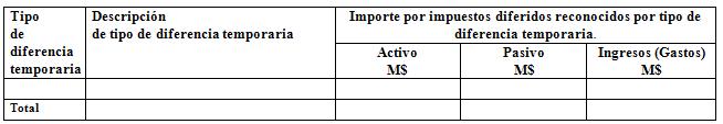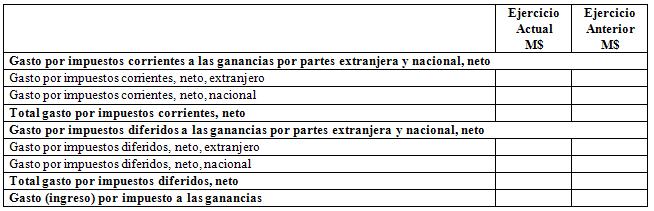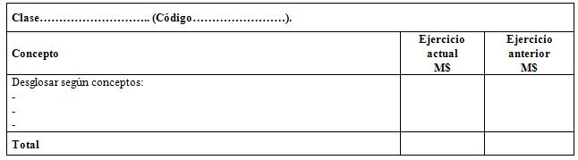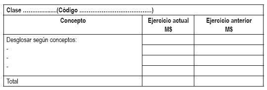 En las notas donde corresponda revelar las clases: Otros resultados varios de operación (Código 31.11.030.100), Otros Costos financieros (Código 31.11.130.060), Otras ganancias (pérdidas) de inversiones (Código 31.11.140.040), Otros beneficios a largo plazo (Código 31.11.040.070), Otros gastos de personal (Código 31.11.040.080) y Otros gastos operacionales (Código 31.11.090.040) que presenten saldos, se deberá presentar el siguiente cuadro: