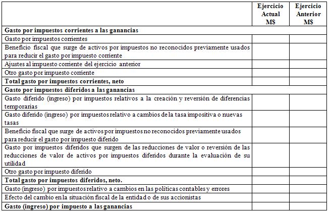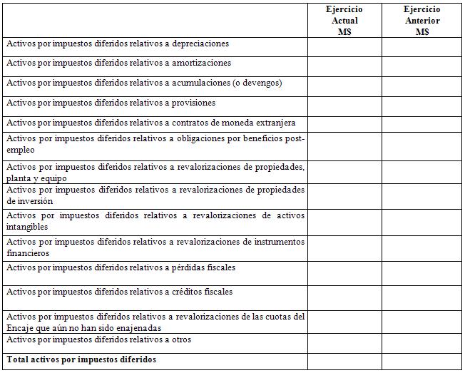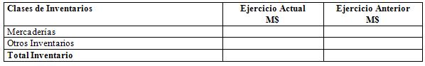 Se debe detallar el código 31.11.090. El cuadro debe presentar el Ejercicio Actual y el Ejercicio Anterior.