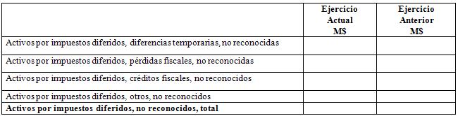 Se deberá presentar el siguiente cuadro: