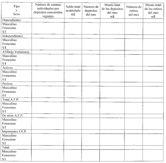 Cuadro N° 7 Número de cuentas de indemnización vigentes, saldo total acumulado en las cuentas, número y monto de los depósitos y retiros del mes, por tipo y sexo