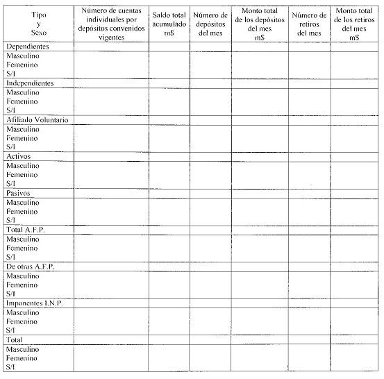 Cuadro N° 9e Número de cuentas individuales por depósitos convenidos vigentes Fondo Tipo E, saldo total acumulado, número y monto de depósitos y retiros del mes por tipo y sexo