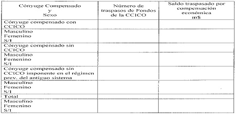 Cuadro N° 14 Número de traspasos de fondos de la cuenta de capitalización individual obligatoria a modo de compensación economica en caso de divorcio o nulidad, por conyuge compensado y sexo