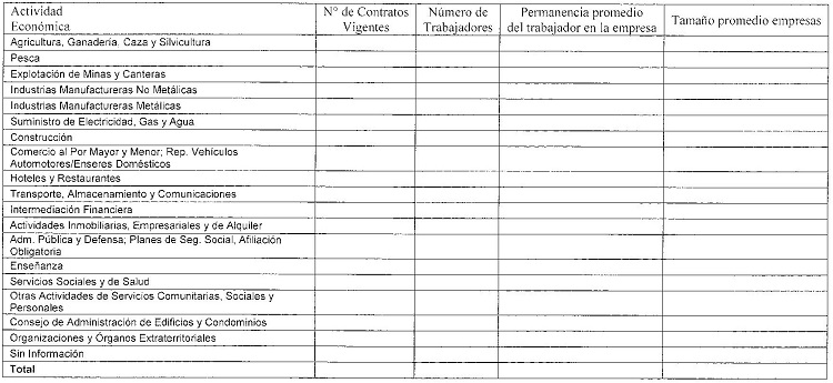 Cuadro N° 16 Número de contratos vigentes según actividad economica, número de trabajadores, permanencia promedio, tamaño promedio de empresa y número de empresas