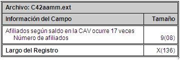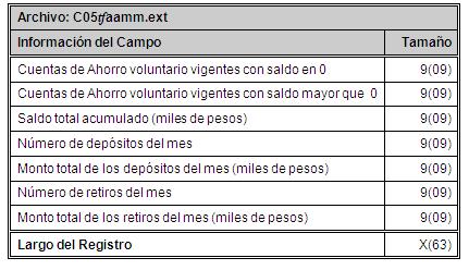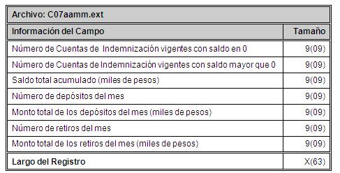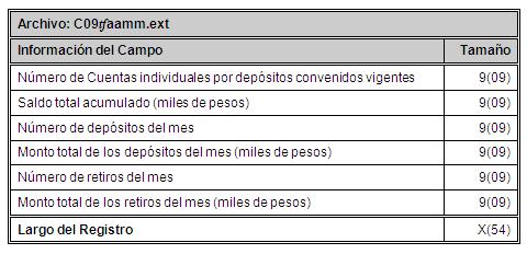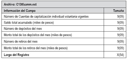 El registro descrito debe informarse en este archivo para cada uno de los tipos de cuentas que se describe en el punto 2.6.