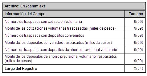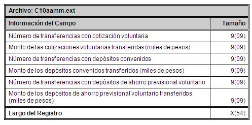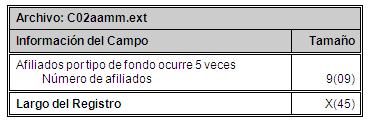 El registro descrito debe informarse en este archivo para cada uno de los tipos de Fondo y Sexo que se describe en el punto 2.11.