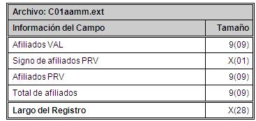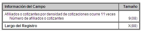El registro descrito debe informarse en este archivo para cada uno de los tipos de afiliados que se describe en el punto 2.9.