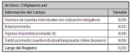 El número de cotizantes del Fondo y el ingreso imponible promedio del Fondo debe incluirse para cada uno de los tipos de Fondos (A, B, C, D y E), ordenados por tipo de Fondo. El registro descrito debe incluirse en este archivo para cada uno de los tipos de afiliados definidos en el punto 2.4.